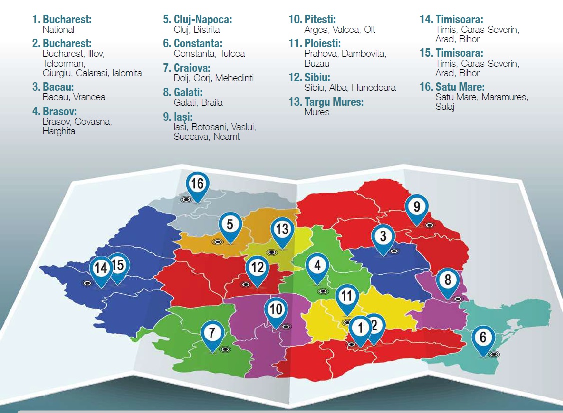 La nivel national exista urmatoarele centre logistice totalizand 16 depozite, cu o suprafata de peste 60.000 de metri patrati: